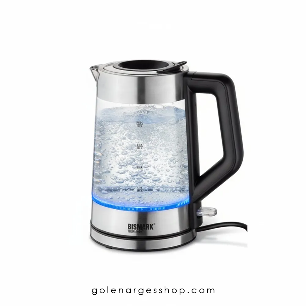 اگر به دنبال یک کتری برقی زیبا، مقاوم و کاربردی هستید، کتری برقی بدنه پیرکس بیسمارک مدل BM3402 با ظرفیت 2.5 لیتر میتواند انتخابی عالی برای شما باشد. طراحی مدرن و استفاده از شیشه نشکن باکیفیت باعث شده هم ظاهر جذابی داشته باشد و هم در برابر حرارت و ضربه مقاوم باشد. کتری Bismark مجهز به کلید روشن/خاموش با یک لمس ساده است که کار کردن با آن را بسیار راحت میکند. همچنین وجود نور مخفی آبی در دور کتری هنگام جوش آمدن آب، جلوهای خاص و لوکس به آشپزخانه شما میبخشد. یکی از ویژگیهای مهم کتری برقی Bismark قابلیت چرخش 360 درجه است. به این معنا که شما میتوانید کتری را به راحتی روی پایه قرار دهید و در هر جهتی بچرخانید، بدون اینکه نگران سیم یا محدودیت زاویه باشید. این قابلیت هم برای استفاده روزانه و هم برای نظافت دستگاه بسیار کارآمد است.